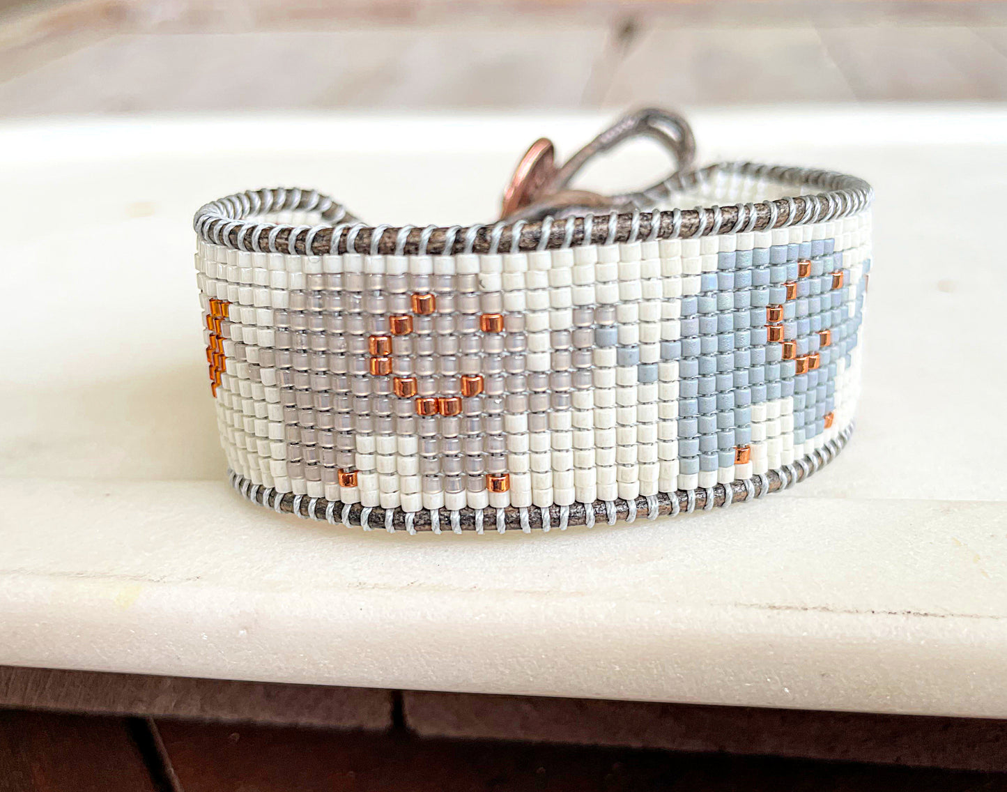 With the cute little elephant pattern, this bracelet is a great gift for a friend. The design features a row of 4 elephants in a few color options. Elephants symbolize luck in this beautiful beaded cuff bracelet.