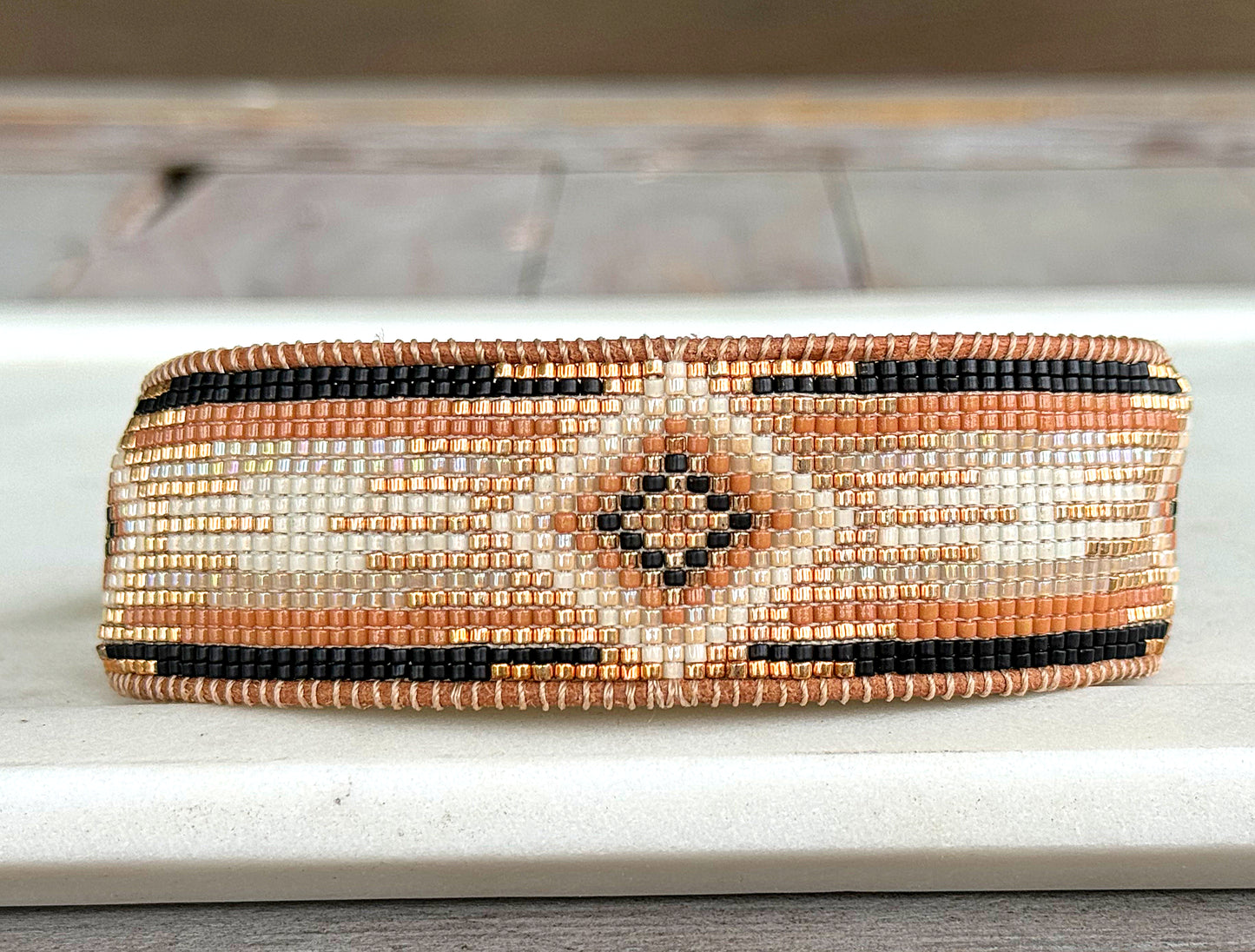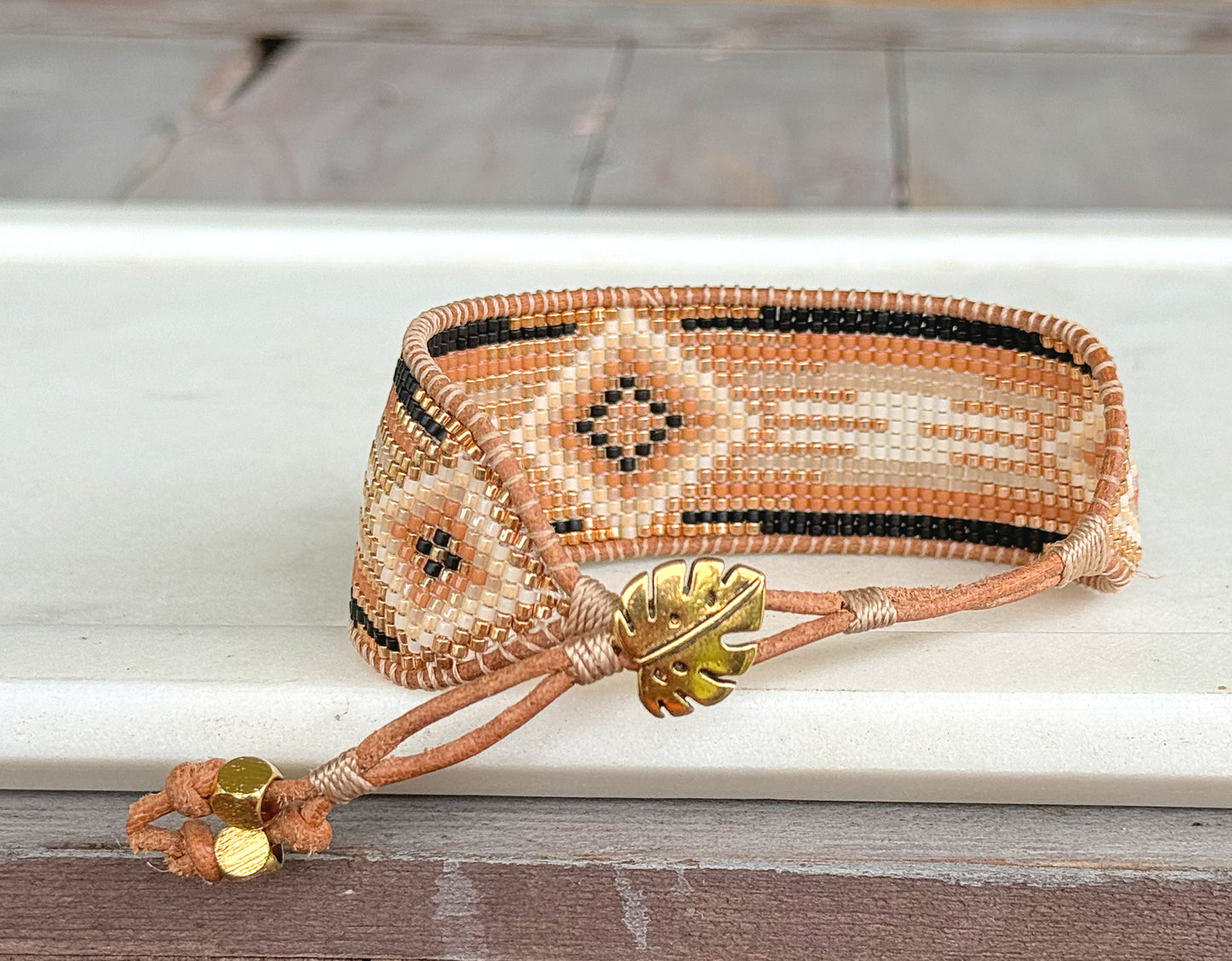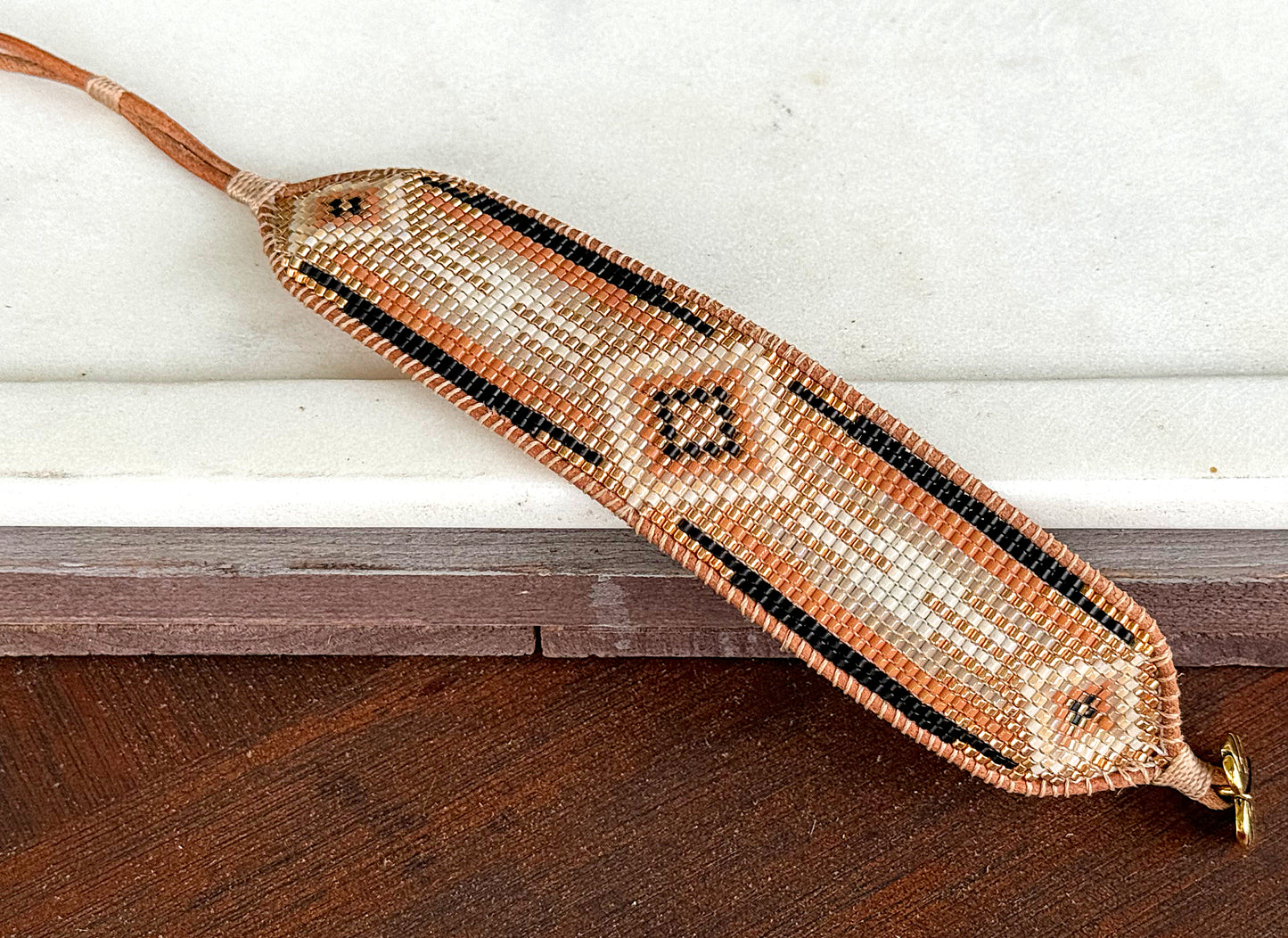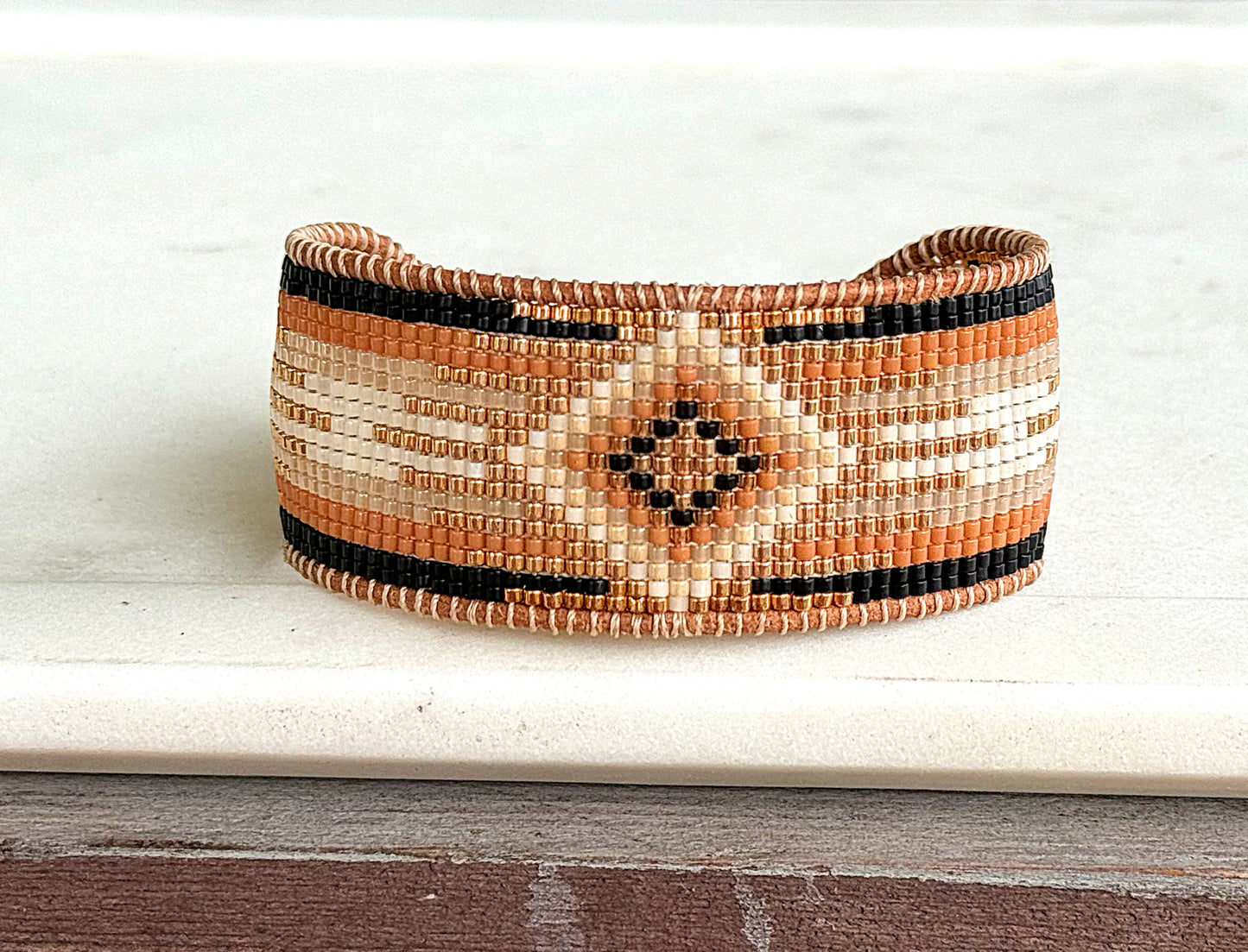 Gold, Honey Tan, and Black Bead Loom Woven Bracelet